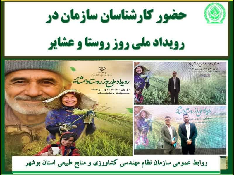 *در رویداد ملی روز روستا و عشایر آقایان دکتر ضرغام حیدریه، عضو شورای نظام مهندسی کشاورزی و منابع طبیعی، مهندس خالق مانعی و مهندس عیسی مشایخی بعنوان نمایندگان سازمان نظام مهندسی کشاورزی و منابع طبیعی استان بوشهر حضور داشتند*.