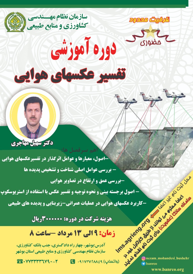 دوره آموزشی تفسیر عکس های هوایی به صورت حضوری با رعایت پروتکل های بهداشتی با ظرفیت محدود برگزار می شود.