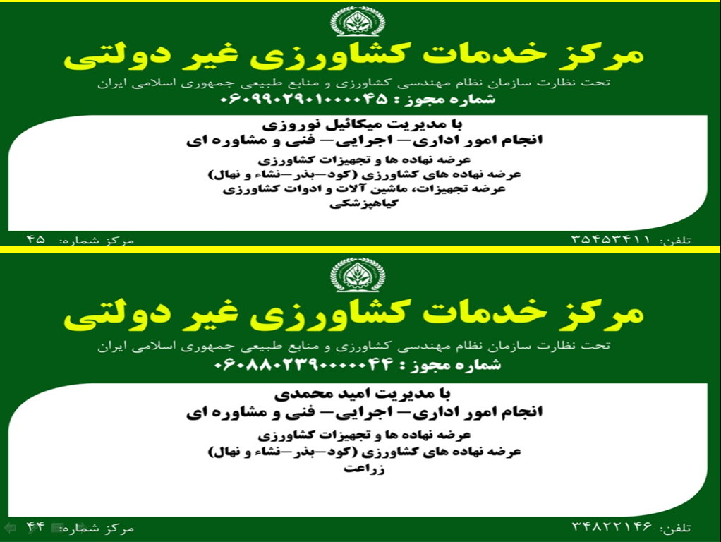 صدور مجوز و استقرار مراکز خدمات کشاورزی و منابع طبیعی غیردولتی در اجرای ماده دو قانون افزایش بهره وری در دهستان ها از طریق تامین نهاده دانش در بخش کشاورزی، ریسک مخاطرات در سرمایه گذاری ها را کاهش و خدمت رسانی به بخش کشاورزی را ارتقاء داد.