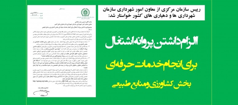 در نامه شاهرخ رمضان نژاد به حسين رجب صلاحي، خواسته شده است تا در بهره مندی از خدمات تخصصی مهندسین کشاورزی و منابع طبیعی مطابق ماده (3) داشتن پروانه اشتغال معتبر از این سازمان از سوی شخص ارائه دهنده خدمت ملاک عمل قرار گیرد.