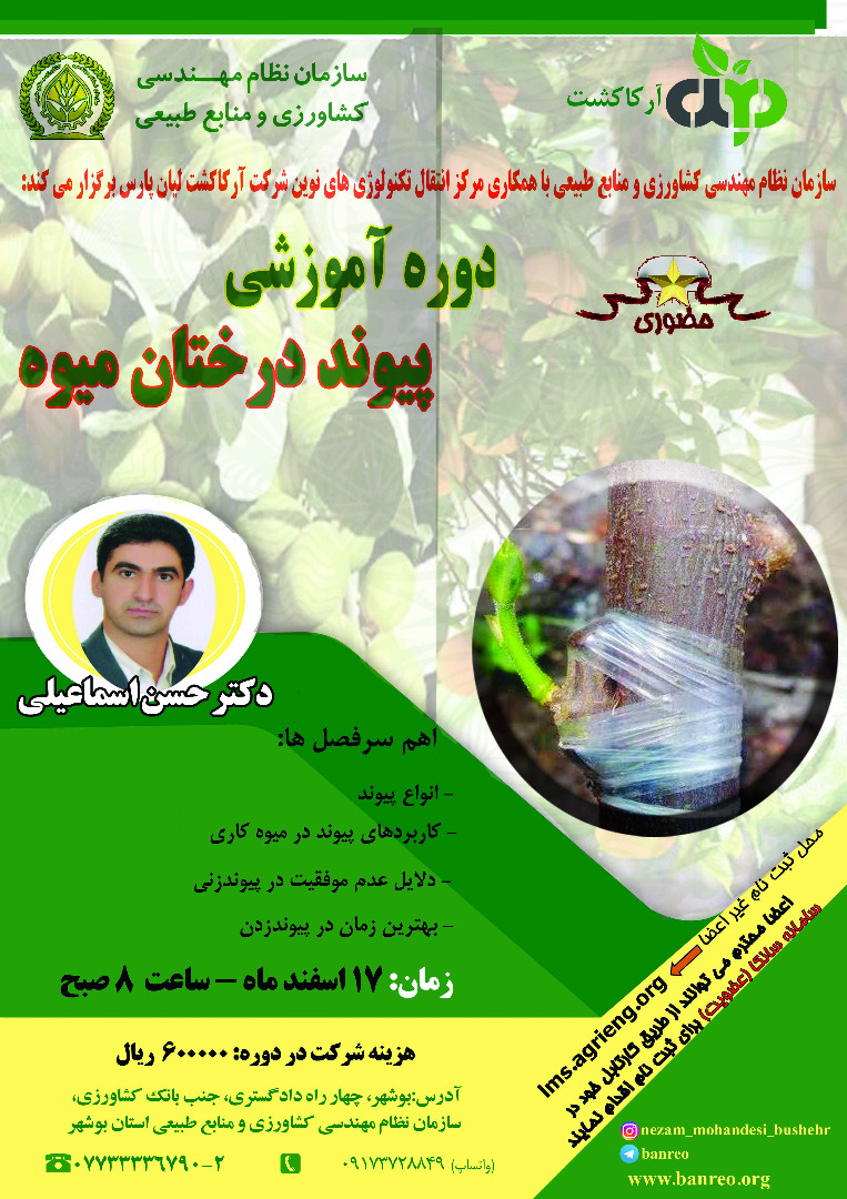 به گزارش روابط عمومی سنم استان دوره آموزشی پیوند درختان میوه توسط سازمان نظام مهندسی کشاورزی و منابع طبیعی استان بوشهر با همکاری مرکز انتقال تکنولوژی های نوین آرکا کشت لیان پارس برگزار می گردد