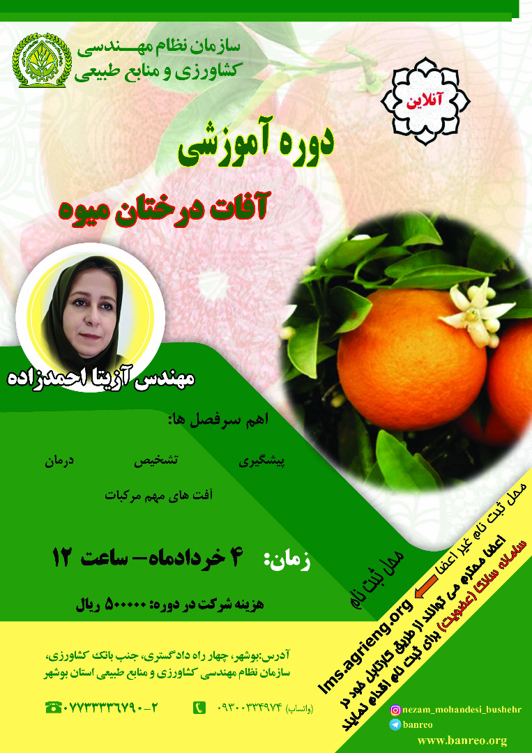 به گزارش روابط عمومی سنم استان دوره آموزشی آفات درختان میوه توسط سازمان نظام مهندسی کشاورزی و منابع طبیعی استان بوشهر برگزار می گردد.