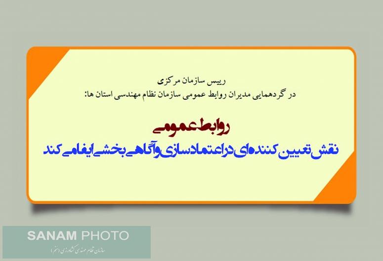 به گزارش پایگاه اطلاع رسانی سنم، شاهرخ رمضان نژاد در گردهمایی مدیران روابط عمومی سازمان نظام مهندسی استان ها که به مناسبت هفته ارتباطات و روابط عمومی برگزار شد، ضمن تبریک این مناسبت به مدیران روابط عمومی سازمان نظام مهندسی استان ها و تقدیر از اقدامات انجام شده در این حوزه، اظهار داشت: بخش قابل توجهی از پیشران و پیشگام بودن سازمان نظام مهندسی، به عنوان حلقه واسط بین دولت و مردم، در گرو نقش آفرینی و اثر بخشی روابط عمومی در حوزه های مختلف می باشد.
