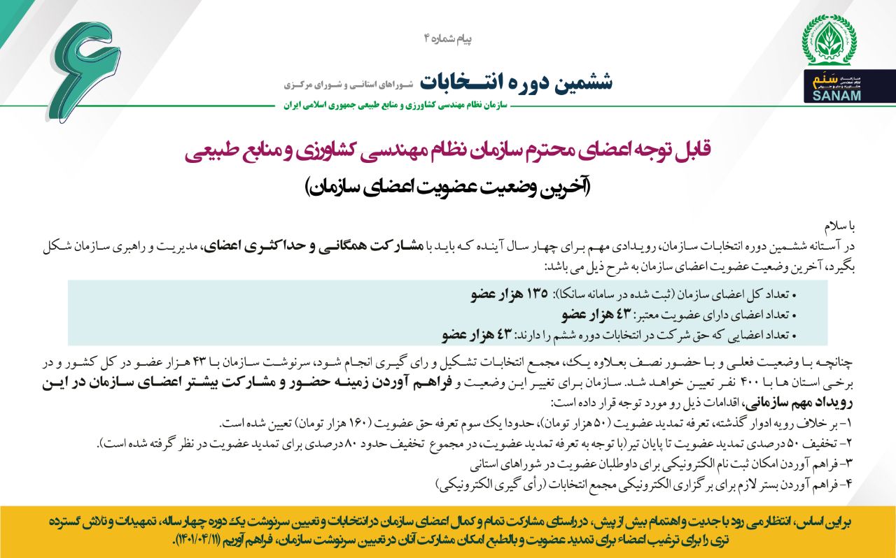 🔻قابل توجه اعضای محترم سازمان نظام مهندسی کشاورزی و منابع طبیعی