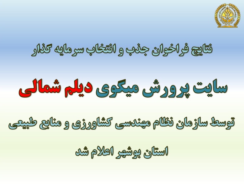 ⏪ نتایج فراخوان جذب و انتخاب سرمایه گذار سایت پرورش میگوی دیلم شمالی توسط سازمان نظام مهندسی کشاورزی و منابع طبیعی استان بوشهر اعلام شد.