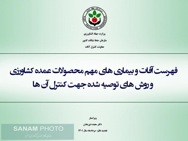 فهرست به روز شده آفات، بيماري ها و علف هاي هرز مهم محصولات عمده کشاورزي، آفتکش ها و روش هاي توصيه شده جهت کنترل آنها، توسط معاونت کنترل آفات سازمان حفظ نباتات کشور منتشر شد.