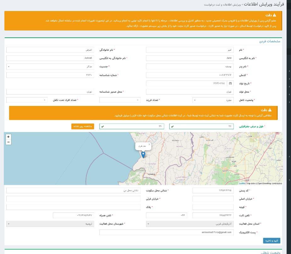 قابل توجه اعضای محترم سازمان ، با عنایت به فراهم شدن زیرساخت ثبت اطلاعات مکانی در سامانه سانکا، در راستای ارجاع کار هوشمند و انتخاب انجام دهنگان کار واجدشرایط جهت انجام خدمت بر اساس فاصله انجام دهنده کار به محل انجام طرح به منظور سهولت و ارتقای کیفیت انجام کار، کلیه اعضای سازمان که تمایل به بهره مندی از ارجاع کار دارند، می بایست نسبت به ثبت مختصات جغرافیایی حداقل یک محل ( سکونت یا فعالیت ) خود اقدام نمایند. بدین منظور اعضای سازمان می توانند از طریق پروفایل عضویت، زیر سیستم عضویت، از طریق منوی ویرایش اطلاعات نسبت به ثبت مختصات جغرافیایی به انتخاب خود اقدام نمایند.