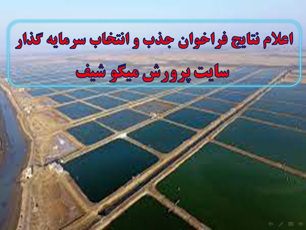 اعلام نتایج فراخوان جذب و انتخاب سرمایه گذار سایت پرورش میگو شیف