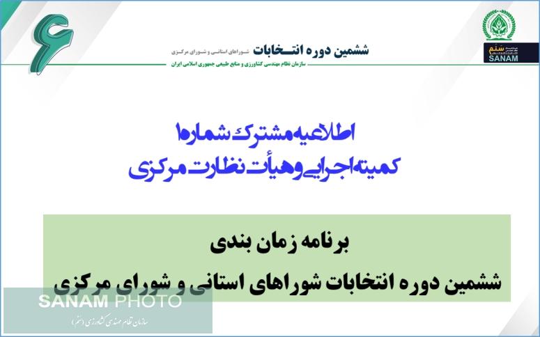 با عنایت به ابلاغ اصلاحیه دستورالعمل ششمین دوره انتخابات شوراهای استانی و شورای مرکزی سازمان نظام مهندسی کشاورزی و منابع طبیعی، برنامه زمان بندی انتخابات به شرح ذیل اعلام می گردد: