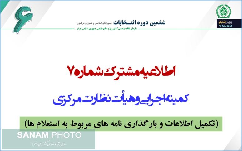 اطلاعیه مشترک شماره 7 کمیته اجرایی و هیأت نظارت مرکزی (تکمیل اطلاعات و بارگذاری نامه های مربوط به استعلام ها)