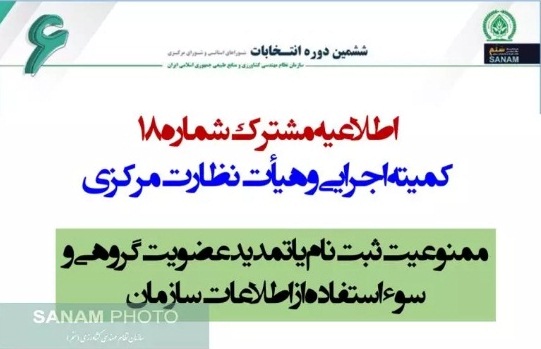 پیرو ابلاغیه شماره 1162/01/س/ن مورخ 1401/03/31 و اطلاعیه مشترک شماره 4 کمیته اجرایی و هیئت نظارت مرکزی، مبنی بر: ممنوعیت هر گونه ثبت نام یا تمدید عضویت اعضای سازمان به صورت گروهی (بیش از 4 نفر با یک شماره کارت یا حساب بانکی) ؛ در صورت احراز تخلف مذکور، کلیه افراد مشمول اعم از عامل و متعاملین، از لیست اعضای واجد شرایط جهت حضور در مجمع انتخاباتی سازمان حذف و از حق رای برخوردار نخواهند بود .