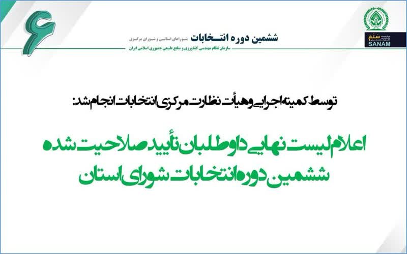 اعلام لیست نهایی داوطلبان تأیید صلاحیت شده ششمین دوره انتخابات شورای استان لیست نهایی داوطلبان تأیید صلاحیت شده ششمین دوره انتخابات شورای استان، توسط کمیته اجرایی و هیأت نظارت مرکزی انتخابات اعلام شد.