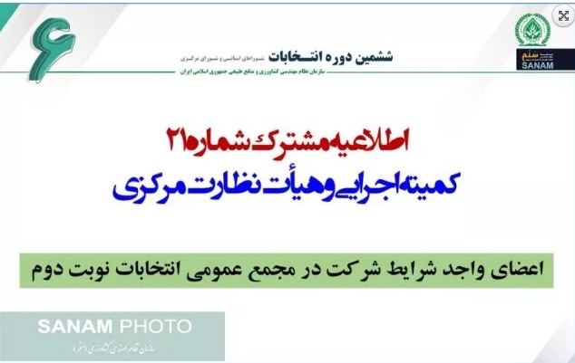 اطلاعیه مشترک شماره 21 کمیته اجرایی و هیأت نظارت مرکزی (اعضاي واجد شرايط شركت در مجمع عمومي انتخابات نوبت دوم)