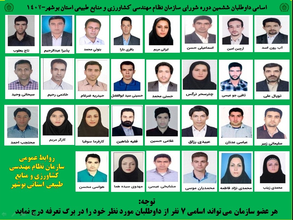 معرفی داوطلبان شورای سازمان نظام مهندسی کشاورزی و منابع طبیعی 1402