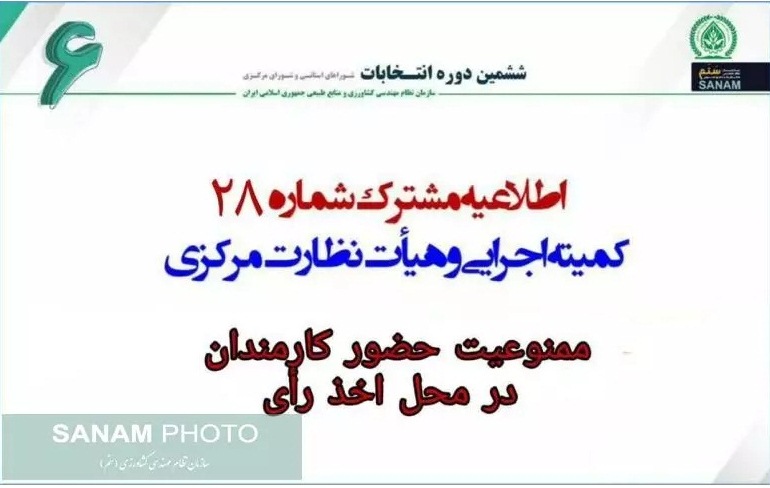اطلاعیه مشترک شماره ۲۸ کمیته اجرایی و هیأت نظارت مرکزی ممنوعیت حضور کارمندان در محل اخذ رأی