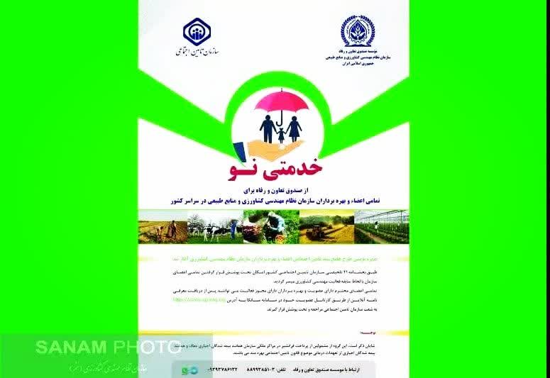 خدمتی نو از صندوق تعاون و رفاه برای تمامی اعضاء و بهره برداران سازمان نظام مهندسی کشاورزی و منابع طبیعی در سراسر کشور