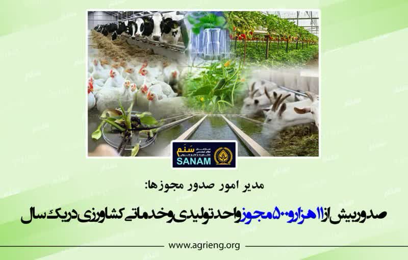 مدیر امور صدور مجوزها در سازمان نظام مهندسی کشاورزی و منابع طبیعی کشور ازصدور بیش از ۱۱هزار و ۵۰۰مجوز واحدتولیدی و خدماتی کشاورزی خبر داد.