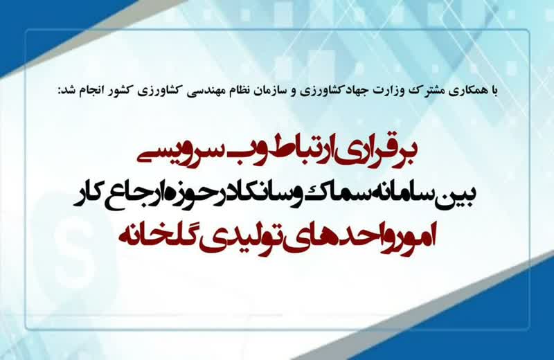 با همکاری مشترک وزارت جهادکشاورزی و سازمان نظام مهندسی کشاورزی و منابع طبیعی کشور، ارتباط وب سرويسی بين سامانه سماك و سانكا در حوزه ارجاع كار امور واحد هاي توليدي گلخانه برقرار شد.