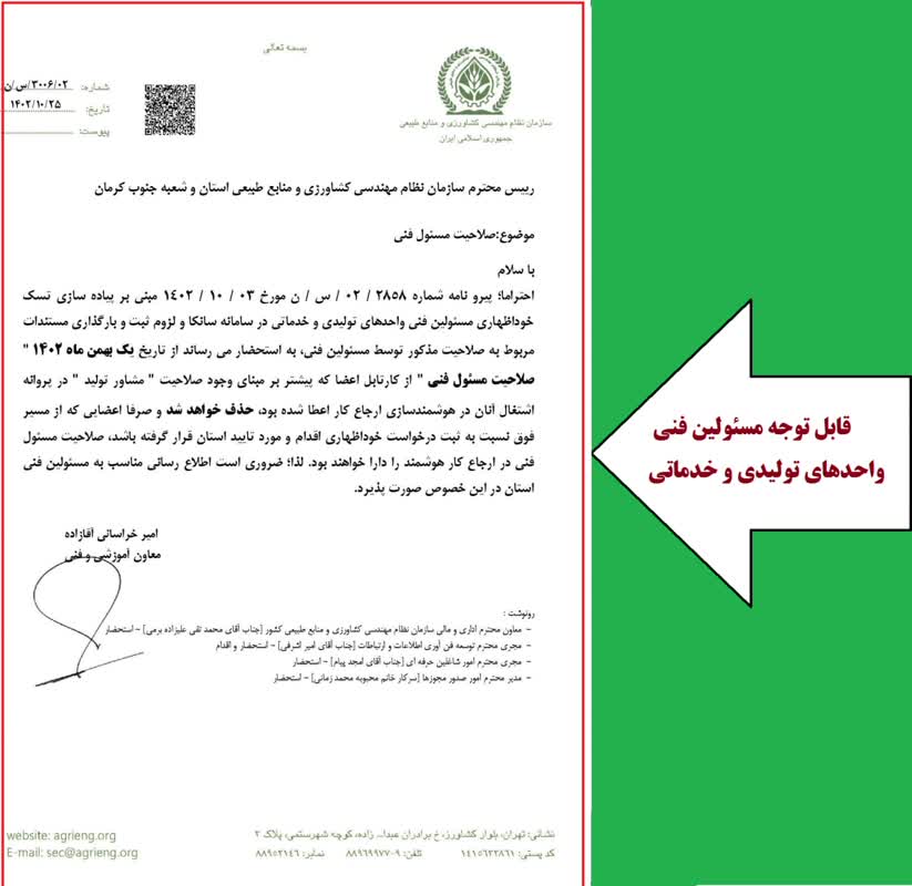 قابل توجه مسئولین فنی واحدهای تولیدی و خدماتی (گیاهپزشکی، دامپروی، شیلات، گلخانه و قارچ)