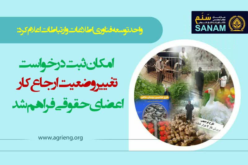 امكان ثبت درخواست تغيير وضعيت ارجاع كار اعضاي حقوقي از ارجاع به شركت و يا ارجاع به اعضاي حقيقي شركت، به صورت الكترونيكي در زير سيستم ارجاع كار اعضاي حقوقي فراهم گرديد.