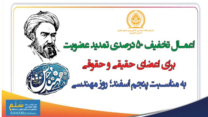 اعمال تخفیف ۵۰ درصدی تمدید عضویت برای اعضای حقیقی و حقوقی به مناسبت 5 اسفند؛ روز مهندسی