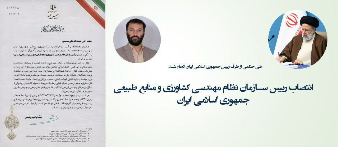 به گزارش پایگاه اطلاع رسانی سنم، در بخشی از این حکم آمده است: در اجرای ماده (۱۲) قانون تأسیس سازمان نظام مهندسی کشاورزی و منابع طبیعی جمهوری اسلامی ایران و بنا بر پیشنهاد شورای مرکزی آن سازمان، به موجب این حکم به عنوان رئیس سازمان نظام مهندسی کشاورزی و منابع طبیعی جمهوری اسلامی ایران منصوب می شوید.