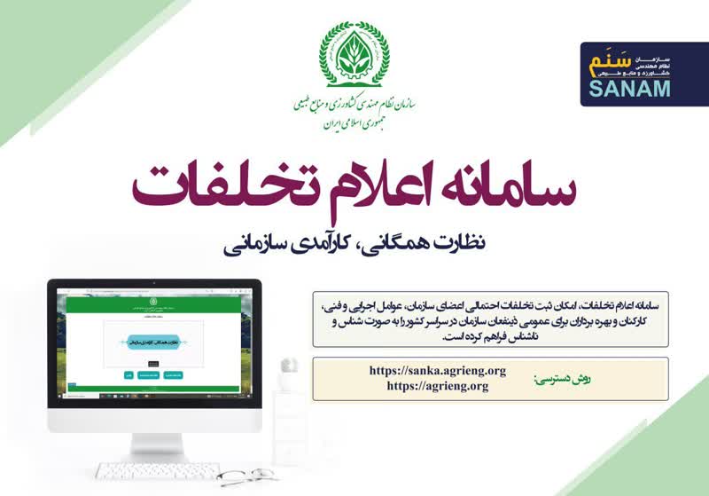 سامانه اعلام تخلفات سازمان نظام مهندسی کشاورزی و منابع طبیعی جمهوری اسلامی ایران اعلام شد