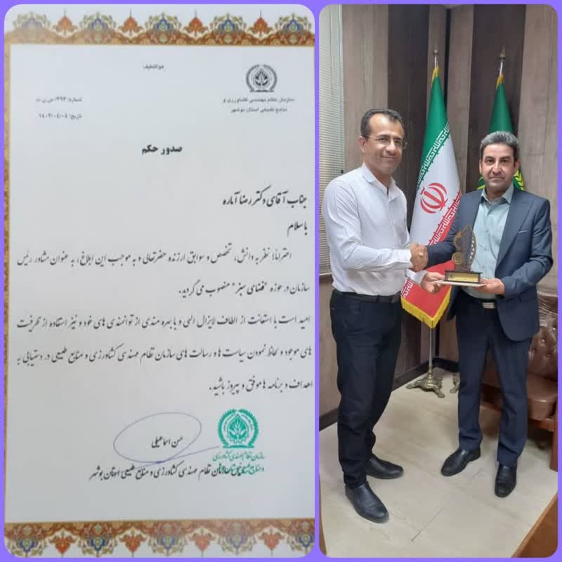 طی حکمی از طرف رییس سازمان نظام مهندسی کشاورزی و منابع طبیعی استان بوشهر انجام شد: