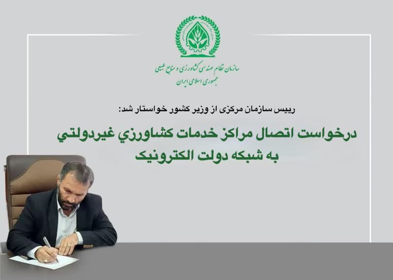 رئیس سازمان مرکزی با ارسال نامه ای به وزیر کشور ،در خصوص اتصال مراكز خدمات كشاورزي غيردولتي سازمان نظام مهندسي كشاورزي و منابع طبيعي به شبكه دولت را خواستار شد.