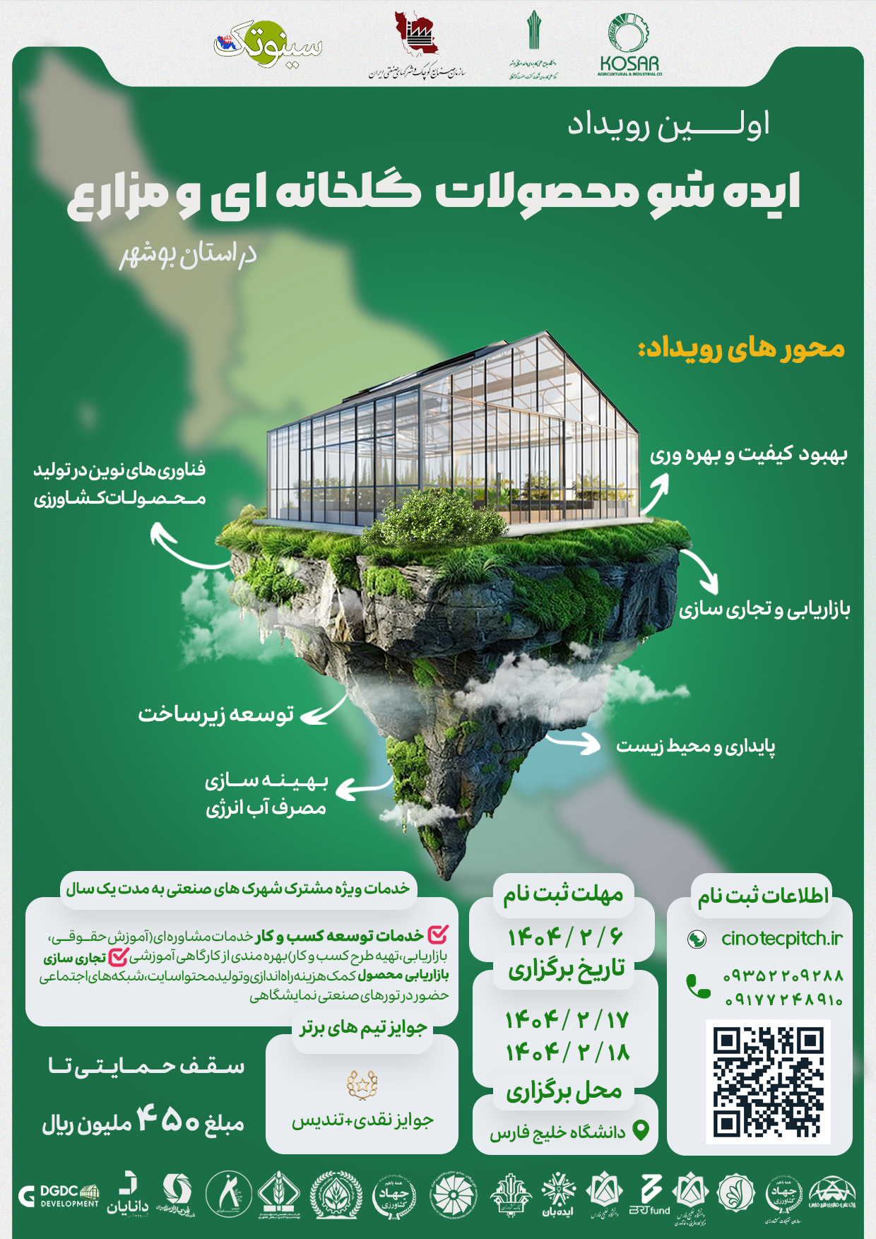 به گزارش روابط عمومی سنم استان، اولین رویداد ایده شو محصولات گلخانه ای و مزارع در استان بوشهر با همکاری و نظارت مرکز کارآفرینی و نوآوری دانشگاه خلیج فارس، سازمان نظام مهندسی کشاورزی و منابع طبیعی استان بوشهر و حمایت شرکت شهرکهای صنعتی استان بوشهر و سایر بازیگران کلیدی زیست بوم استانی برگزار میگردد: