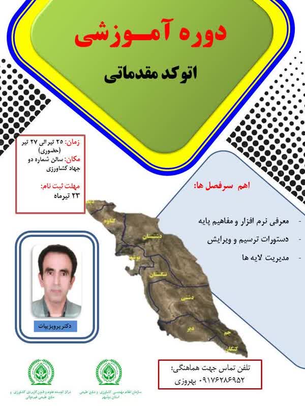 🔰دوره آموزشی《 *اتوکد مقدماتی* 》توسط سازمان نظام مهندسی کشاورزی و منابع طبیعی استان بوشهر برگزار می گردد