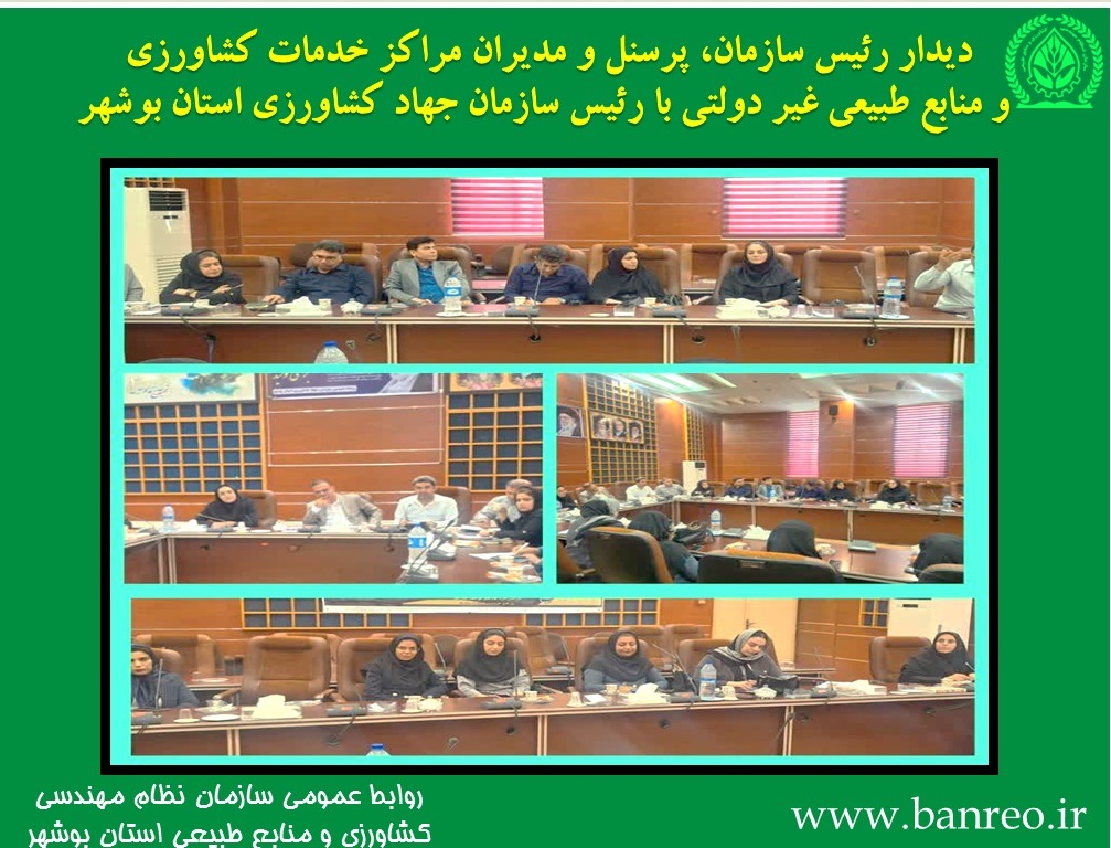 مرتضی بحرانی رئیس سازمان جهاد کشاورزی استان نیز در ادامه به رسالت و شرح وظایف نظام مهندسی کشاورزی و منابع طبیعی اشاره کرد و افزود، استفاده از ظرفیت های در اختیار و بهره گیری از خدمات مفید بالاخص *ارجاع امور نظارتی* را به سازمان نظام مهندسی کشاورزی و منابع طبیعی و مراکز خدمات کشاورزی غیر دولتی به عنوان بازوان سازمان را در دستور کار قرار خواهد داد.
