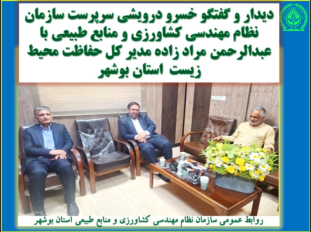 دیدار و گفتگو خسرو درویشی سرپرست سازمان نظام مهندسی کشاورزی و منابع طبیعی با عبدالرحمن مراد زاده مدیر کل حفاظت محیط زیست استان بوشهر
