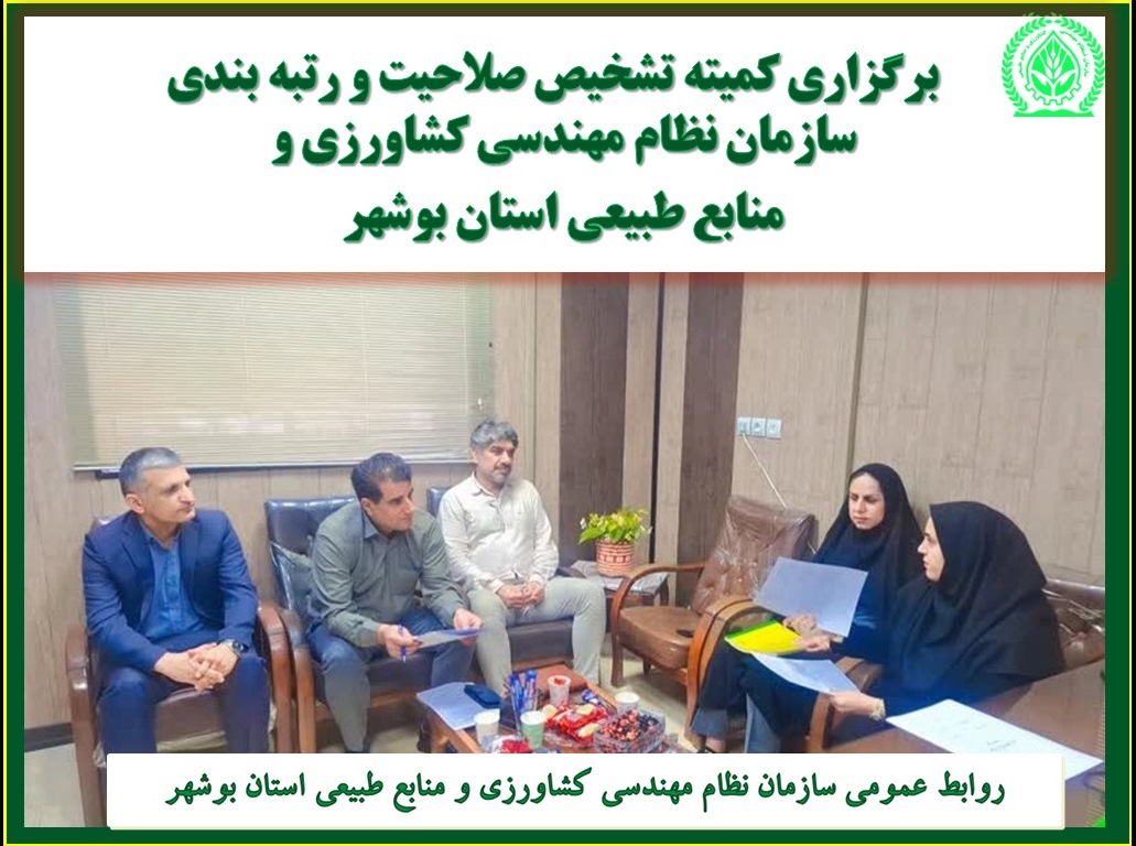 به گزارش سنم بوشهر کمیته تشخیص صلاحیت و رتبه بندی با حضور کلیه اعضا در محل سازمان نظام مهندسی کشاورزی و منابع طبیعی استان برگزار شد