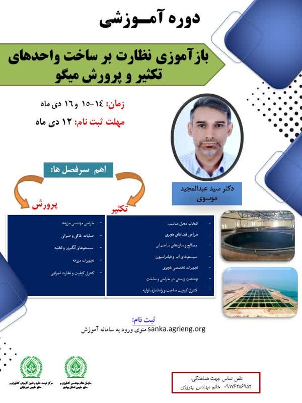 دوره بازآموزی نظارت بر ساخت واحدهای تکثیر و پرورش میگو*