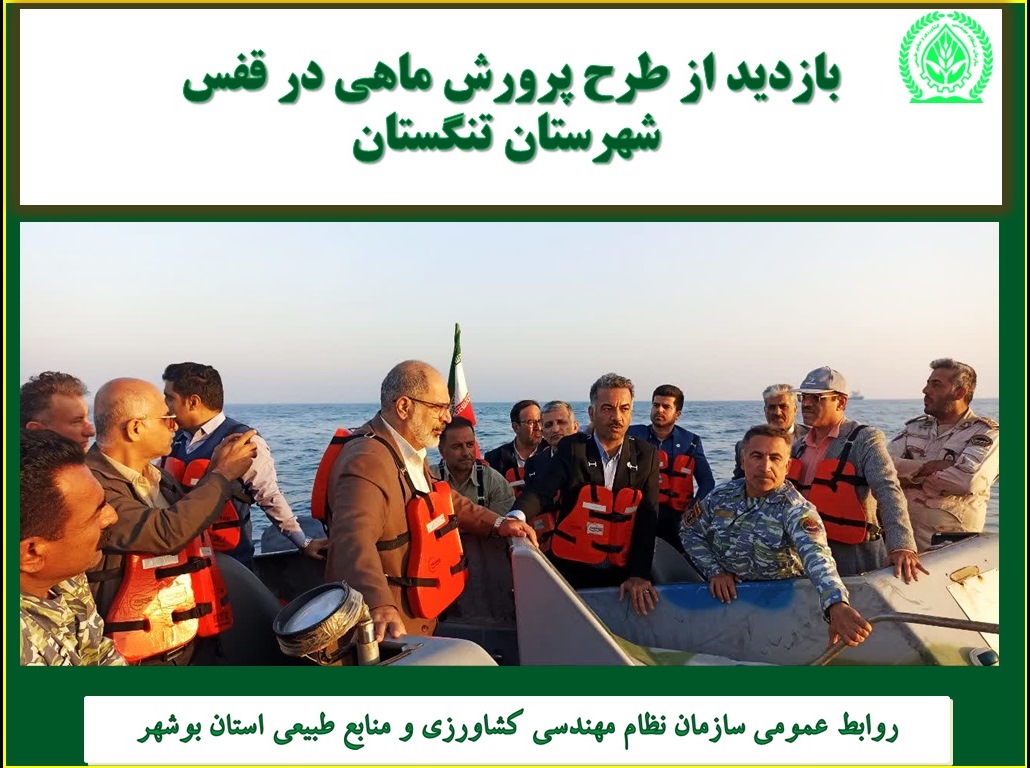 در راستای حمایت از توسعه آبزیپروری و بهرهگیری از ظرفیتهای دریایی استان، رئیس سازمان نظام مهندسی کشاورزی و منابع طبیعی استان بوشهر بههمراه جمعی از مدیران دستگاههای اجرایی از طرح پرورش ماهی در قفس واقع در شهرستان تنگستان بازدید کرد .